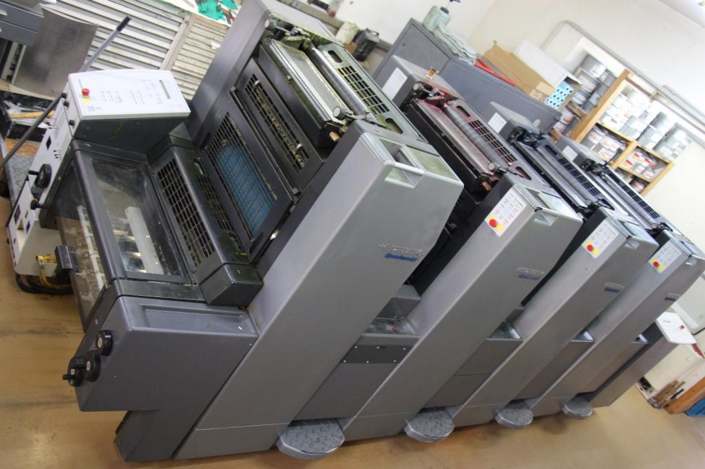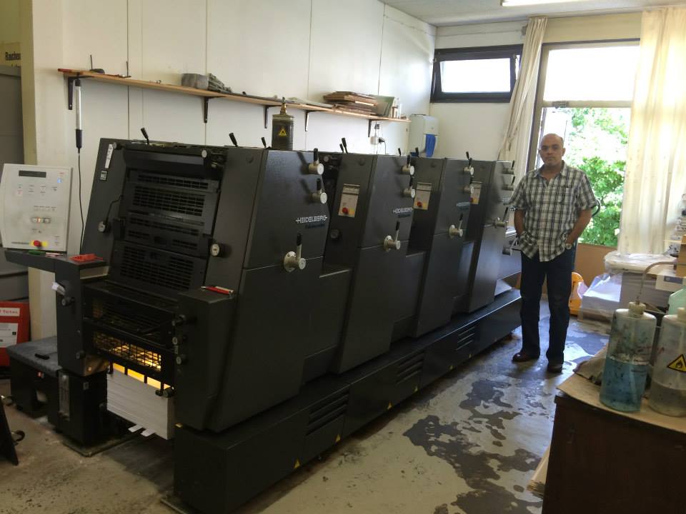 مطبعه كامله بالمانيا ( ماكينه اربعه – مقص بولر + طواية ومكن تربيط وتخريم وتغليف )
